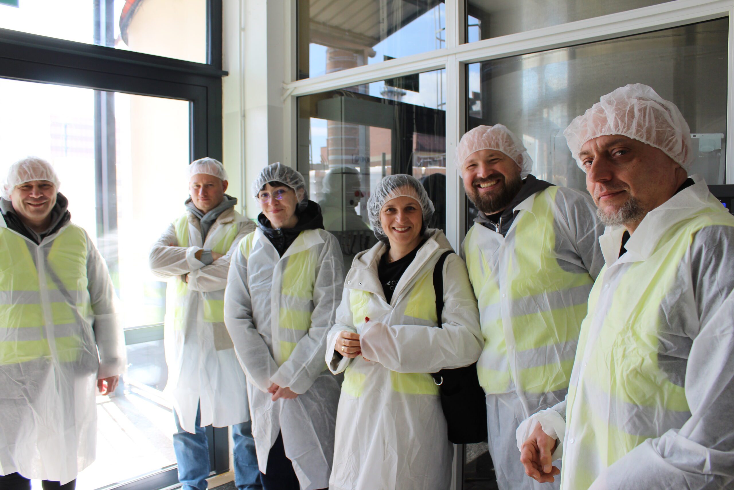Podczas spotkania w przedsiębiorstwie specjalizującym się w produkcji napojów spirytusowych uczestnicy zostali zapoznani m.in. z procesami logistycznymi w branży alkoholowej. Przedstawiono im kluczowe aspekty związane z bezpieczeństwem, systemami kontroli jakości oraz identyfikacją krytycznych punktów kontroli. Szczególną uwagę poświęcono fazom produkcji alkoholi, obejmującym: dobór surowców, procesy oczyszczania i filtracji, mieszanie składników, rozlewanie oraz pakowanie wyrobów gotowych.
