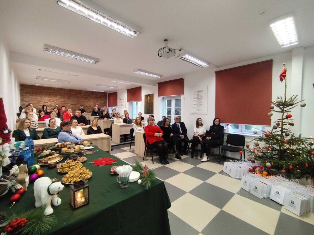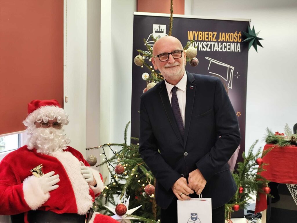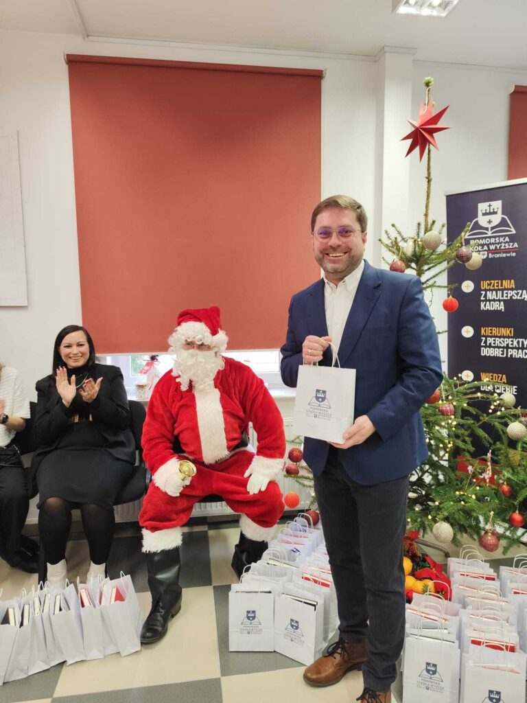 Zaskoczył swoją obecnością uczestników świątecznego spotkania. Po wykładzie wygłoszonym przez Wójta Gminy Braniewo – Pana Jakuba Bornusa, niespodziewanie wszedł do sali i obdarował wszystkich obecnych upominkami. 🎁