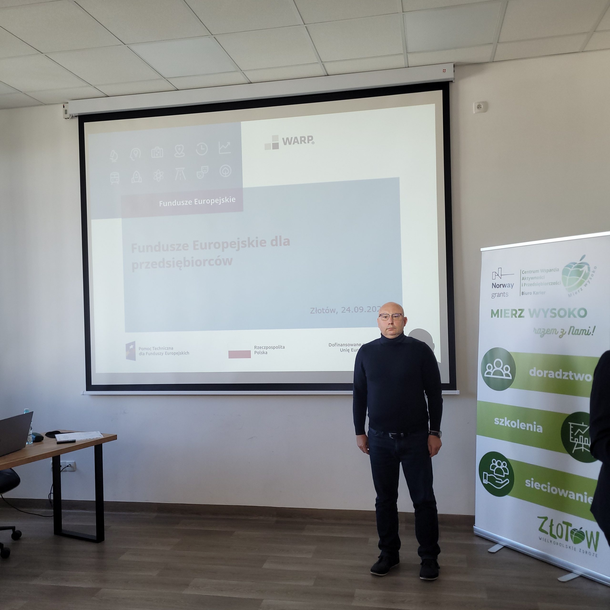 W dniu 24.09.2025 r. dr inż. Dariusz Starkowski - pracownik naukowo-dydaktyczny z Instytutu Zarządzania, Ekonomii i Logistyki PSW brał udział w szkoleniu pt. „Fundusze Europejskie dla Przedsiębiorców”.